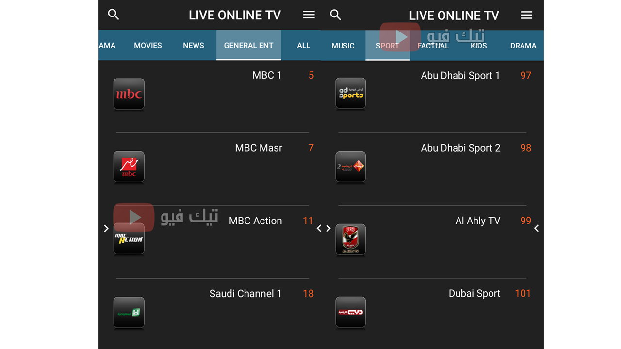 تطبيق عالمي لمشاهدة قنوات النايل سات والقنوات الرياضية والافلام والمسلسلات العربية مجانا على هاتفك المحمول تيك فيو Techview