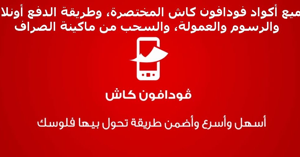 جميع أكواد خدمة فودافون كاش سحب وإيداع وتحويل شحن رصيد ودفع وشراء أونلاين