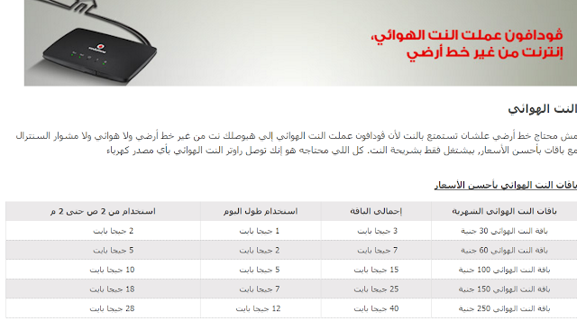 شاهد عروض الانترنت الهوائى من شركة فودافون انترنت بدون خط ارضى