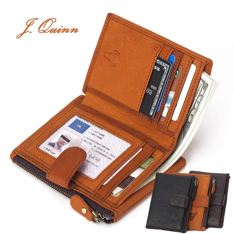 محافظ للرجال بتصميم كلاسيكي من J Quinn محفظة من الجلد الطبيعي مزودة بجيب للعملات المعدنية للرجال مع حامل صور للبطاقات محفظة بسحاب ثنائية الطي جديدة Leather Wallet For Men Leather Walletgenuine Leather Wallet