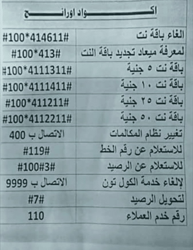 جميع اكواد الاشتراك وتجديد باقات جميع الشركات اتصالات فودافون وي We المصرية للاتصالات اورانج موبينيل سابقا 2018